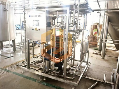 啤酒殺菌時(shí)利用高壓啤酒泵送入二段式板式換熱器預熱段,與已完成殺菌的熱啤酒預加熱至62℃左右,再經(jīng)過(guò)高溫保溫段用85℃的熱水將啤酒加熱到78℃,在保溫管段保溫30秒后達到巴氏殺菌單位25pu值,然后再被預熱的冷啤酒降溫至4℃,進(jìn)入緩沖罐準備灌裝。板式殺菌機組采用高精度的數控調節,自動(dòng)控制和安全保護措施,并可與CIP系統配合進(jìn)行設備自動(dòng)清洗。